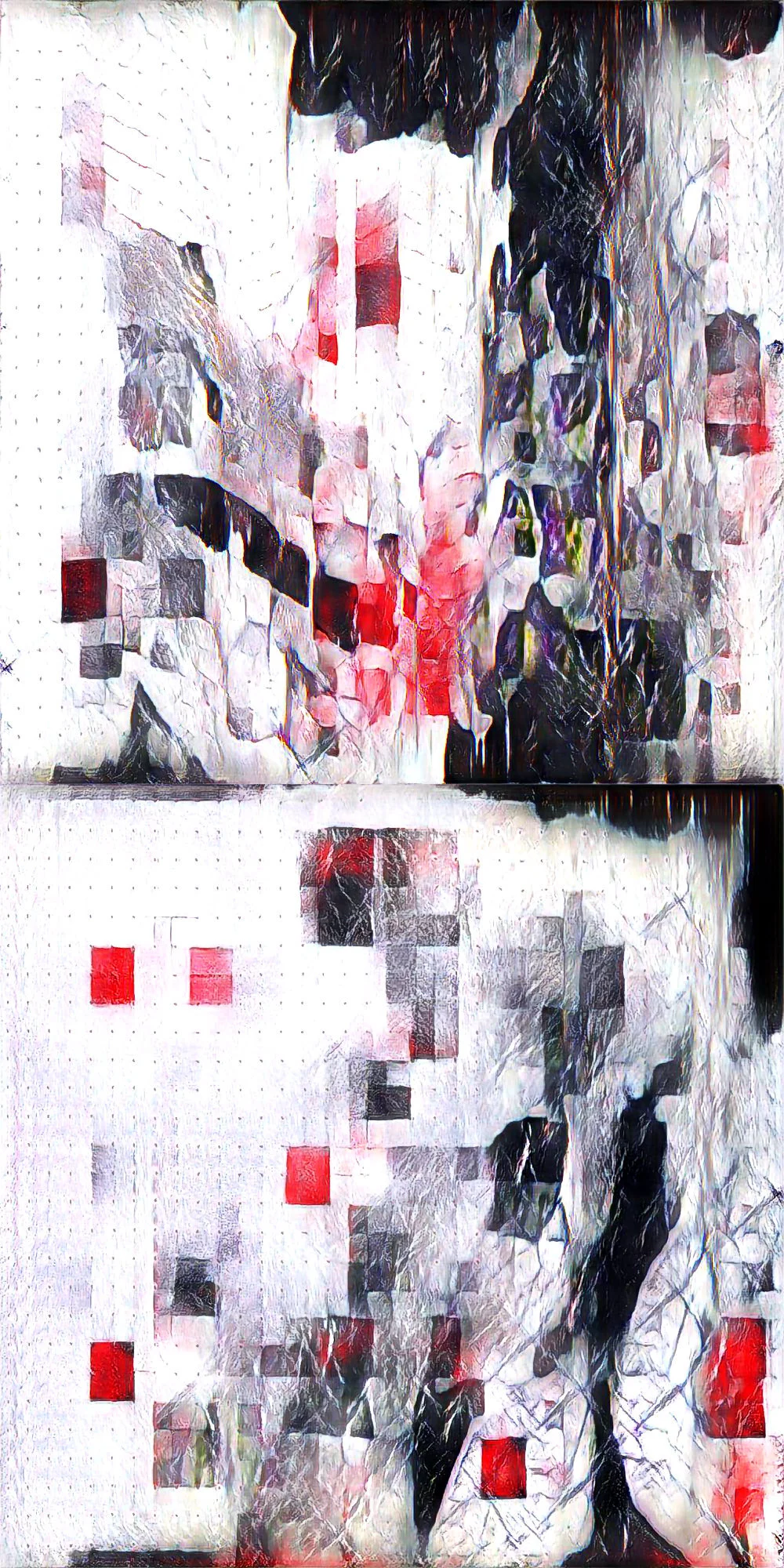 Based in Italy, the artist pursued his education in technology and later reinvented himself as an artist, utilizing several mediums beyond visual, including music and performance art. Now at the forefront of cryptography, Cuttini’s art practice usually results from a sequence of interventions that vary in complexity. Aiming to mold the artificial into the natural, and distort or transform the natural into the artificial, the artist uses the AI tool as a companion, and seeks error from the computer whose objective is to mirror outputs from inputs. As the previous Artist-in-Residence for Playform, Cuttini’s pursuit for error plays an integral role in his latest exhibition, Defined Undefined. The artist’s process begins by feeding hundreds of ink stamped papers into the AI generation, resulting in glitch and pattern to the artist’s liking. The 12 selected works challenge notions of digital reproduction and mirroring, and investigate the relationship between human touch and technology.